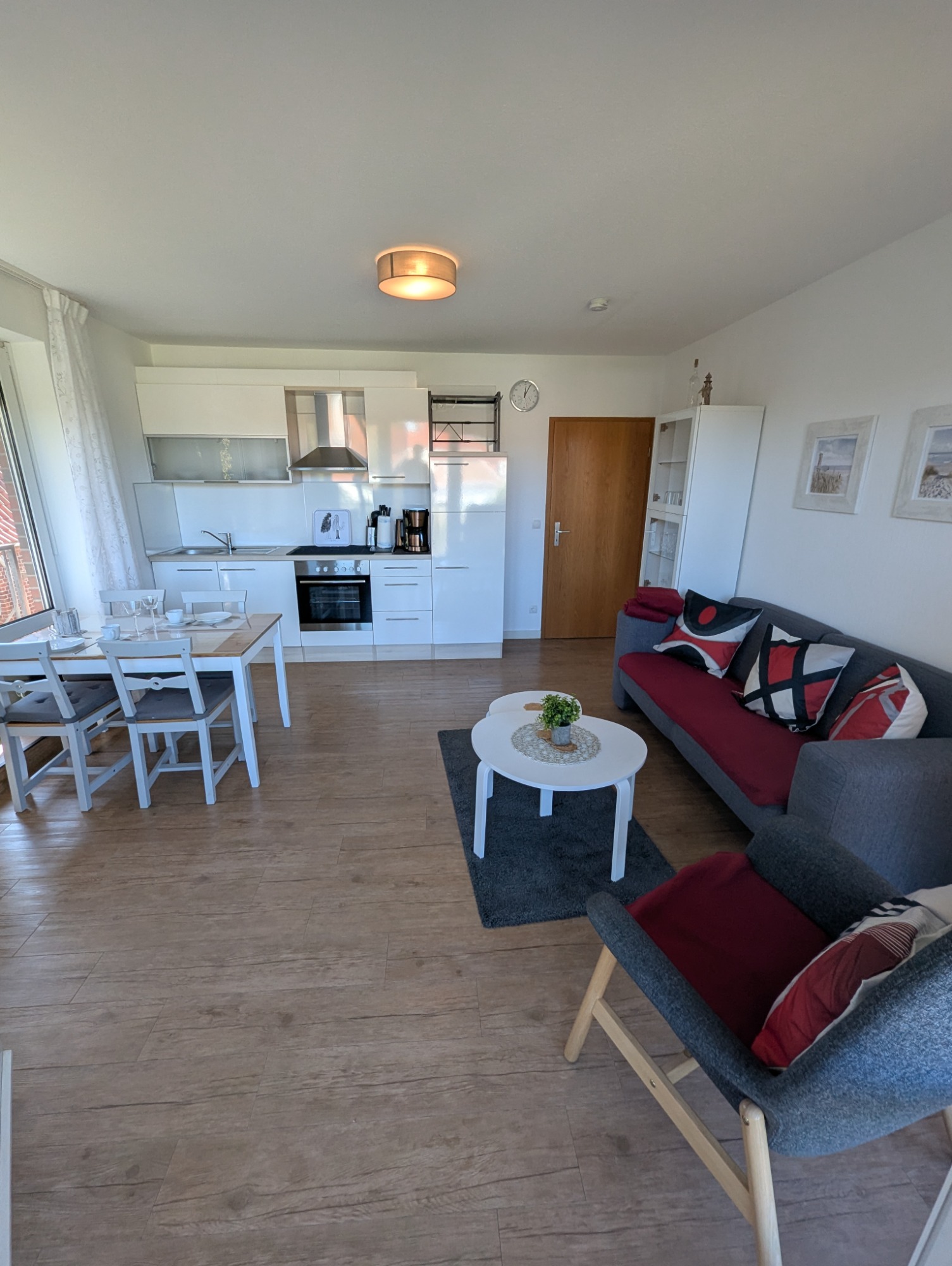 3 Zimmer mit einen kleinen Bad Dusche Wc und Balkon mit Blick in den Gemeinschaftsgarten. Diese Ferienwohnung wurde gerade teilwiese modernisiert. Das Apartment ist Familienfreundlich und auch nach Absprache mit dem Vermietungsbüro für Tierliebhaber geeignet.