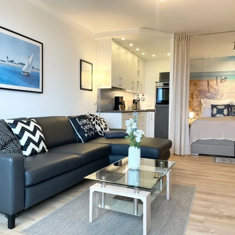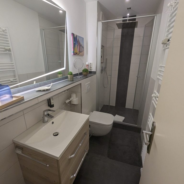 3 Zimmer mit einen kleinen Bad Dusche Wc und Balkon mit Blick in den Gemeinschaftsgarten. Diese Ferienwohnung wurde gerade teilwiese modernisiert. Das Apartment ist Familienfreundlich und auch nach Absprache mit dem Vermietungsbüro für Tierliebhaber geeignet.